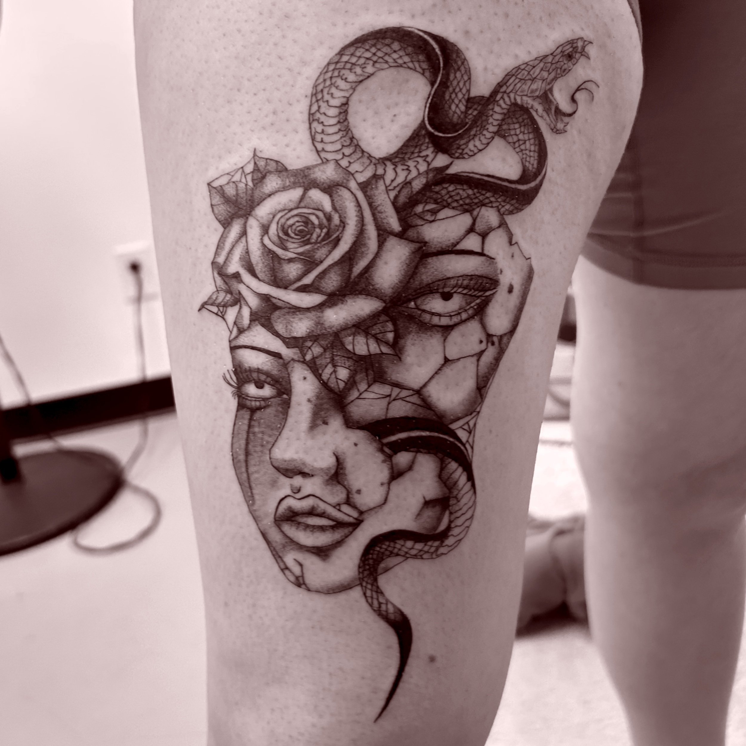 For as long as I can remember, I’ve loved to draw. In high school I started drawing temporary tattoos on my arms, legs and hands. I did my first Stick ‘N Poke tattoo at the age of 15, from there I kept going.